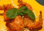 Rock shrimp w. Pineapple Mayo, garnish w. Bonito flakes, sesame seeds, seaweed & dried yolk powder |